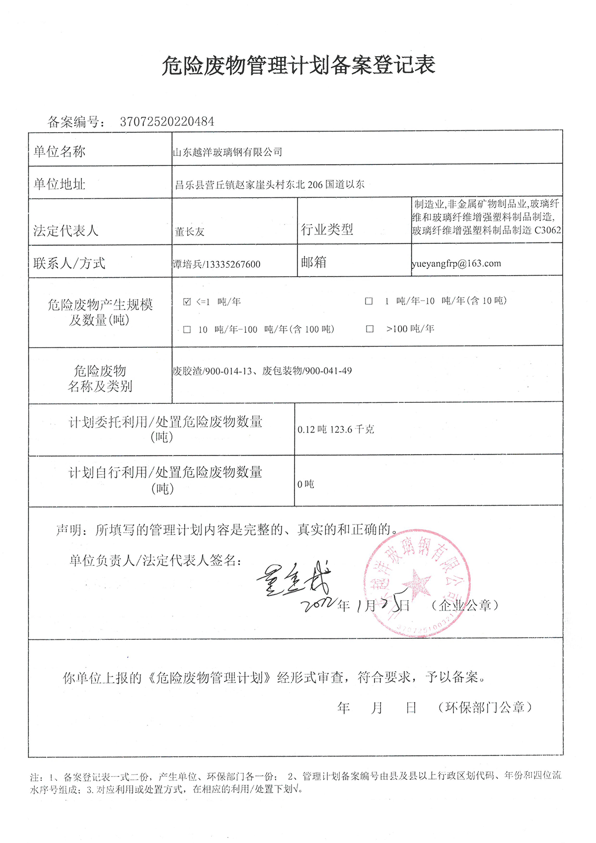 抖音91玻璃鋼2021年度危(wēi)險廢物管理計劃及備(bèi)案登記公(gōng)示